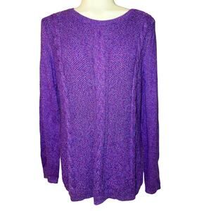 Talbot's Purple Heather Cable Knit Sweater Pullover Women's Medium Long Sleeve