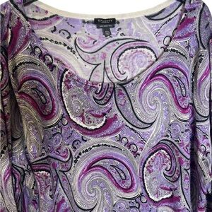 Talbots Purple Paisley Pure Merino Wool Lightweight Sweater 3X Petite GUC