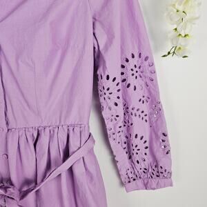 Talbots Purple Placed Eyelet Fit & Flare Shirt Dress Cotton Lined Midi Size 2P