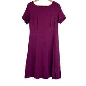 Talbots Purple Ponte Fit and Flare Dress. Size 4. Boatneck. Short sleeeve. Back zipper closure. Thicker fabric for flattering lines. Excellent used condition.