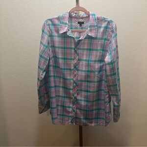 Talbots Purple Teal Plaid Button Up Long Sleeve Shirt Blouse Top Large