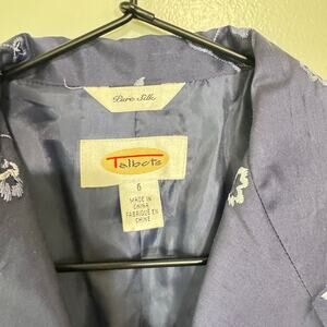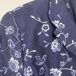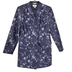 Talbots Purse Silk Long Blazer Jacket Size 6 Blue & White Floral Button Corpcore