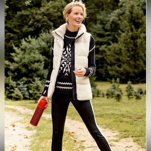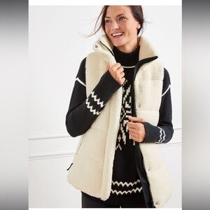 The perfect grab-and-go layer for cool-weather days. Made from plush faux sherpa with a flattering quilted pattern. Features a cozy mockneck, contrast details at the zip front pockets and a full zip and button placket closure.