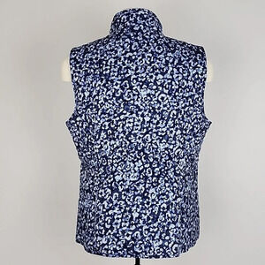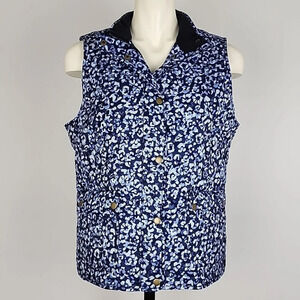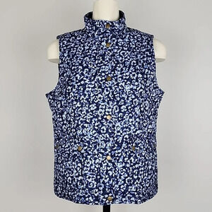 Talbots Quilted Blue Abstract Leopard Diamond Print Vest Size Large Petites