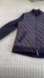 Stay warm and stylish with this quilted navy jacket featuring cozy knit sleeves. Perfect for layering in cooler weather. Indigo blue, size XS. Preowned