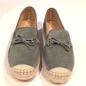 Talbots Quinn Horsebit Bow Suede Platform Espadrilles Slip On Shoes In Sagebrush