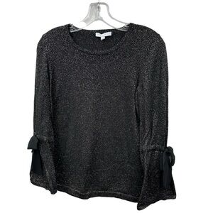 Talbots RSVP Black Sweater with Metallic Gold Sparkle, Bow Sleeves, Small