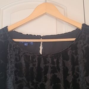 Talbots RSVP Black Velvet Floral Burnout Lined Blouse Tunic Top Size 2X