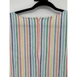Talbots Rainbow Striped Linen Sleeveless Dress Size 16 Petite Coastal Pom Pom