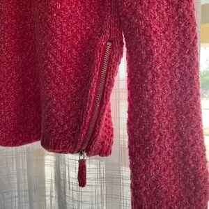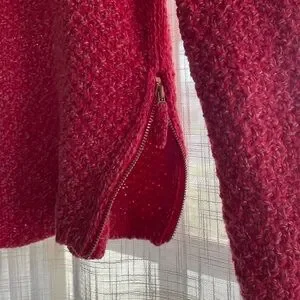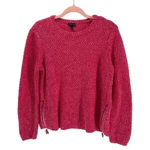 Stay cozy and stylish with this vibrant raspberry red sweater. Perfect for any occasion with jeans or dresses up with a skirt. Side zippers allow for you to have more shape if you want! Beautiful chunky knit, zippers still work. No signs of wear