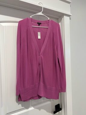 Talbots Raspberry Pink V-Neck Button Cardigan