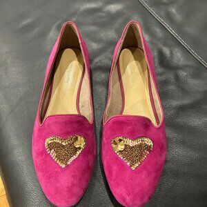 Talbots Raspberry Suede Ryan Novelty Gold Heart Comfort Flats (US 9.5M)