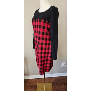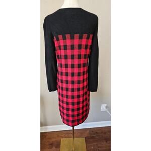 Talbots Red Black Buffalo Check Lambs Wool Shift Sweater Dress Medium Petite MP