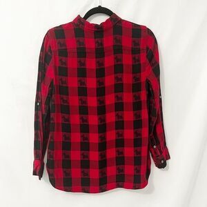 Measurements laying down and are approximate. Smoke free and pet friendly home! Scottie dogs all over in the Buffalo plaid, super soft, button down with roll tab sleeves loose fit.