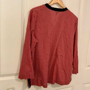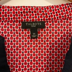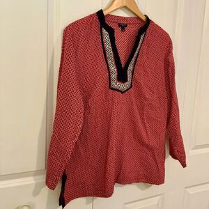 Talbots Red Blue Embroidered Cotton Popover Tunic Top Size 1X