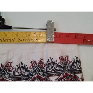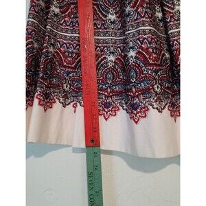 Talbots Red Blue Off White pleated a line skirt sz 6 boho retro print