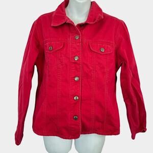 Talbots Red Button Down Shacket Thick Shirt Jacket 100% Cotton Long Sleeve S