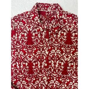 Talbots Red Christmas Reindeer Button Down sz 8Petite Holiday Preppy Classic