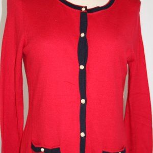 Talbots Red Cotton Cashmere/Cotton Blend Cardigan Sweater Pearl Buttons PM