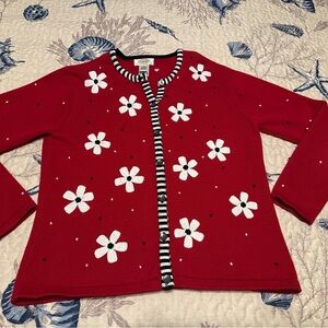 Talbots Red Floral Cardigan Sweater Size S Petite