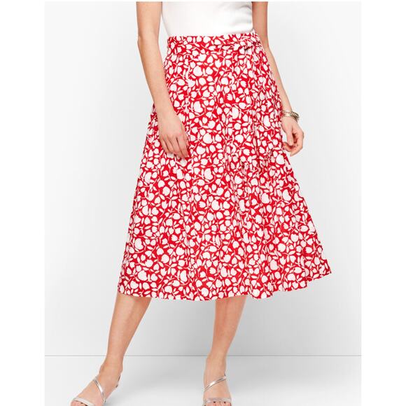 Talbots Red Floral Cotton Midi Skirt Size 14 NWT