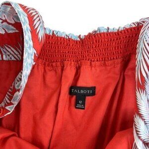 Talbots Red Floral Midi Dress. Size 12. Blue and white accents. Lined. Smocked detail at chest. Elastic waist. Excellent used condition.