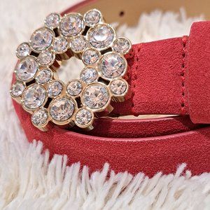 *REASONABLE OFFERS ACCEPTED* Size XS. Length 36.25" - Width 1". Buckle measures 1.75" x 1.75". Made of 100% red suede leather. Lining is 100% Polyurethane. Buckle has shiny bright crystals. Beautiful belt. New with tags. No flaws.