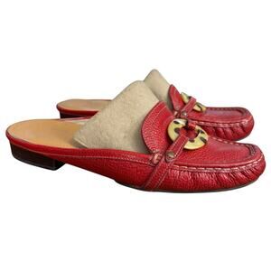 Talbots Red Leather Slip On Mules Pebble Loafers Horse Bit Shoes sz 9.5 M