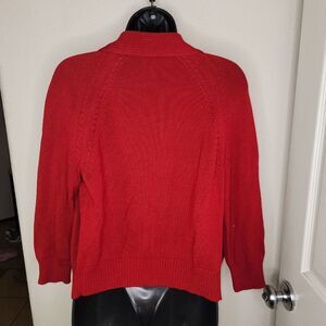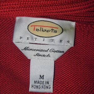 Excellent like new condition. No flaws to note. Women's Talbots Red Mercerized Cotton Stretch Open Front Cardigan Sweater Medium Petite.