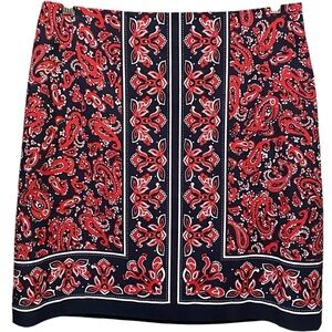 Talbots Red Navy Paisley Bandana Print Pencil Skirt Boho Western Size 6