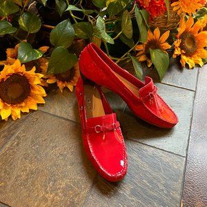 Talbot’s fire engine red patent driving moccasin/loafer in genuine Brazilian leather. Size 7 B.