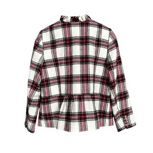 Talbots Red Plaid Wool Blend Ruffle Trim Peplum Back Blazer Jacket