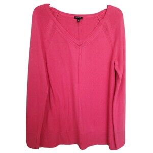 Talbots Red Pointelle V-Neck Cotton Blend Pullover Sweater Size Medium