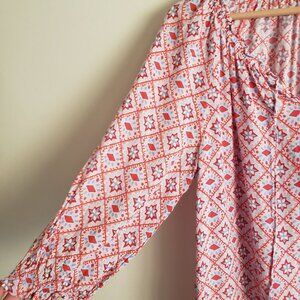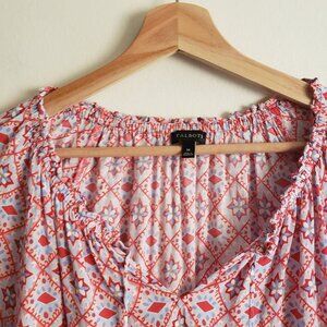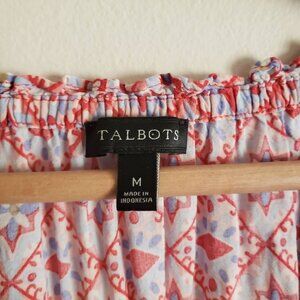 Talbots Red Print Peasant Blouse M Flowy Lightweight Relaxed Fit Top