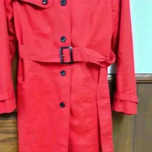 Talbots Red Raincoat/Overcoat/Trench Coat W/Belt 2 Front Pockets Lined Size M