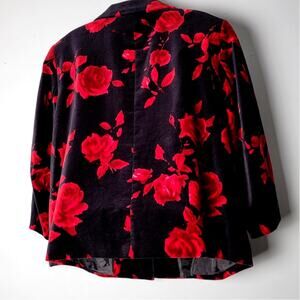 Talbots Red Rose Velvet Jacket 16WP Soft Goth Floral Romantic Dark Academia