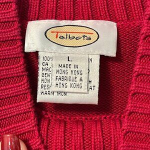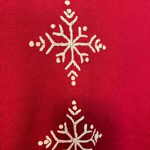 Talbots Red Snowflake Embroidered Cotton Sweater | Size Large