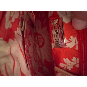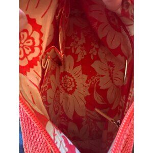 Talbots Red Straw Handbag With Bamboo Accents & Floral Lining