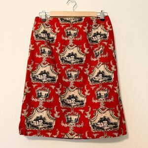 Talbots Red Tan Toile 100% Cotton Pencil Skirt Size 8