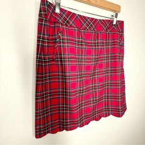 Talbots Red Tartan Plaid Scalloped Hem Wool Blend Skirt, lined, side zipper closure with hook and eye