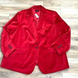 Talbots Red Velvet Jacket. Soft-to-the-touch velvet. In a blazer silhouette with just-right tailoring and button-cuffed sleeves. So chic and winter-ready.