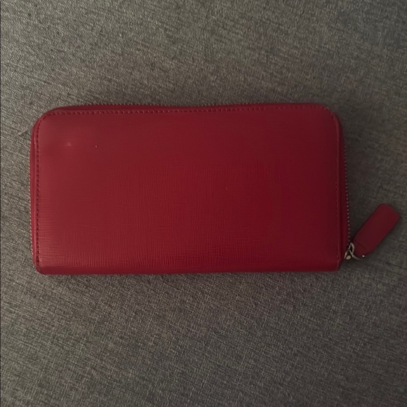 Elegant red wallet by Talbots. Sleek design with zip closure.