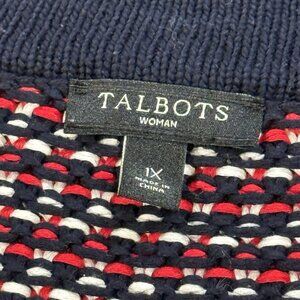 Talbots Red White Blue Button Front Cardigan Sweater Chunky Knit Womens size 1X