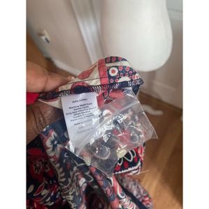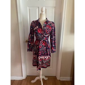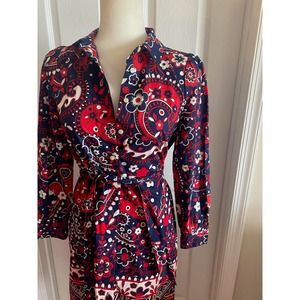 Talbots Red White Blue Paisley Floral Print Button Front Long Sleeve Dress