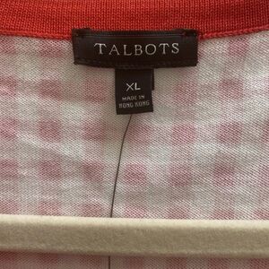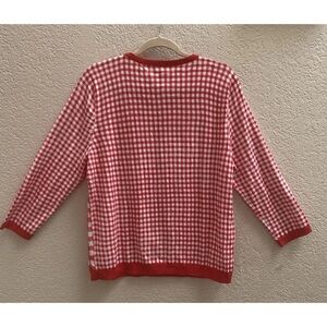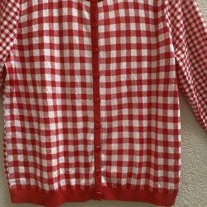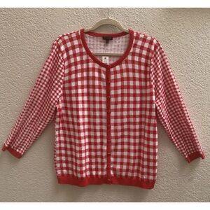 Talbots Red White Gingham Cardigan SweaterSize XL 3/4 Sleeve Cottagecore NWT