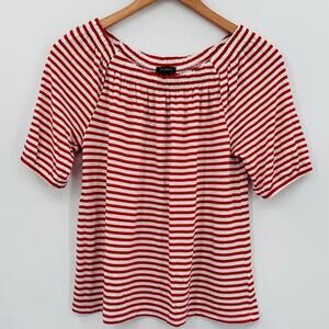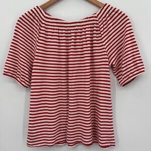 Talbots Red & White Striped Round Neck on or off Shoulder Top Blouse Womens XS
