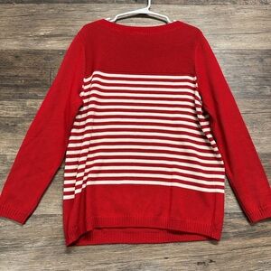 Talbots Red and White Crew Neck Sweater with Nautical Design