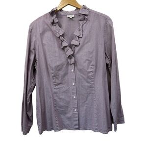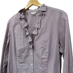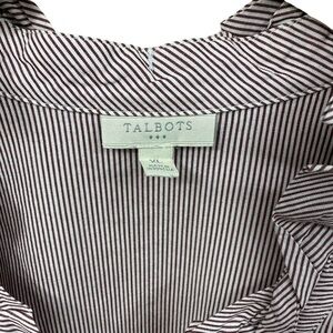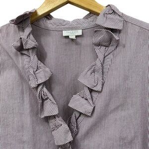 Talbots Red and White Pinstripe Ruffle Long Sleeve Blouse, XL