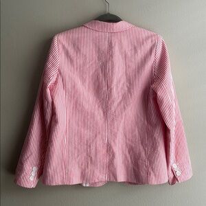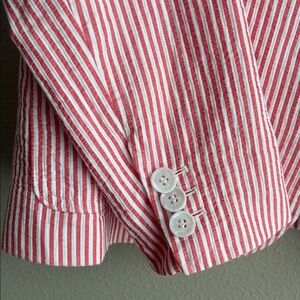 Used Good Condition. Chic Talbots blazer with red and white stripes. Features a classic notch collar and two-button closure. Ideal for a polished look.