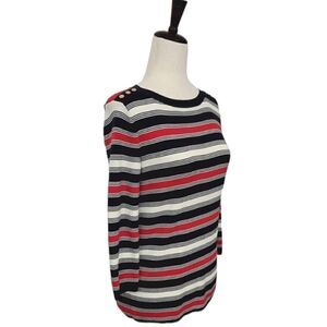 Talbots Red Striped Boatneck 3/4 Sleeve Gold Button Top